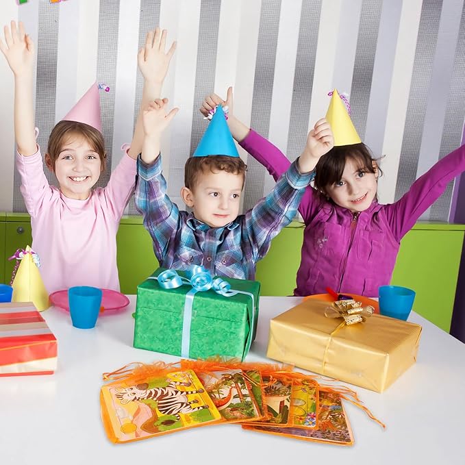 - Party Gift Puzzle - You will receive 12 wooden jigsaw puzzles (6 dinosaurs and 6 animals) and 12 orange storage bags, with a variety of styles, our dinosaurs puzzles are children's favorite party gift toys