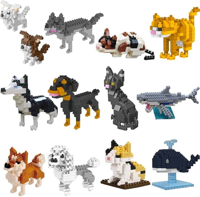 - Diversified Variety of Small Animal Species: This 12 small animal building block includes 4 cute cats, 5 different breeds of dogs, 2 shiny fish, and 1 powerful wolf, fully satisfying children's curiosity and exploration desire for different animals.