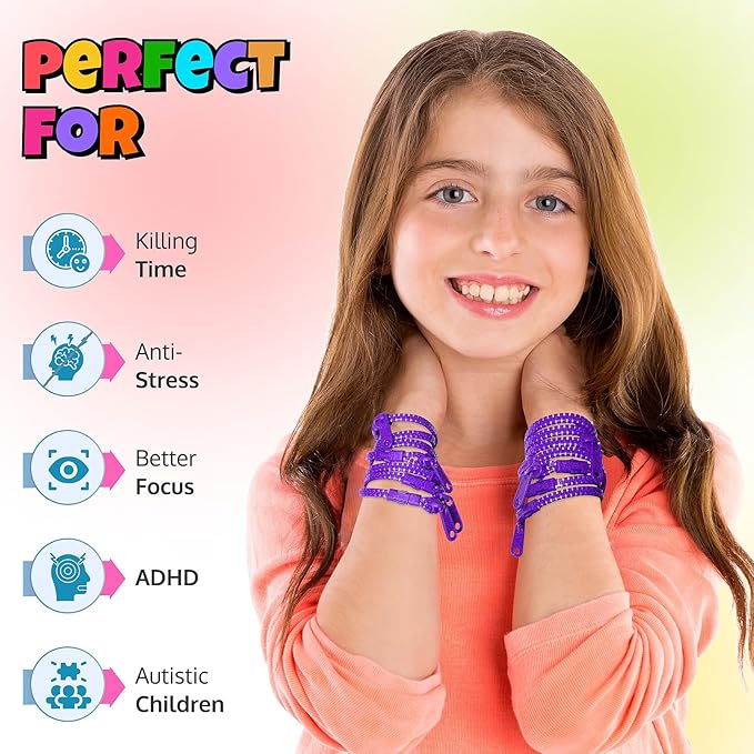 - Purple Quality Assurance: Our kid-friendly purple zipper bracelets are designed with safety and durability in mind. As unique fidget bracelets for anxiety, they provide a secure fidgeting outlet while embracing the spirit of purple.