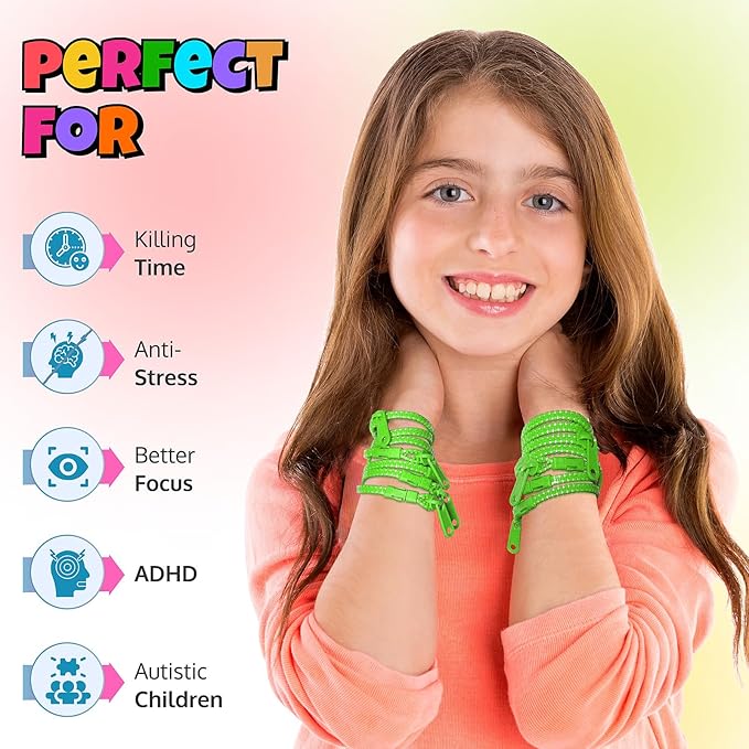 - Green Quality Assurance: Our kid-friendly green zipper bracelets are designed with safety and durability in mind. As unique fidget bracelets for anxiety, they provide a secure fidgeting outlet while celebrating the freshness of green.