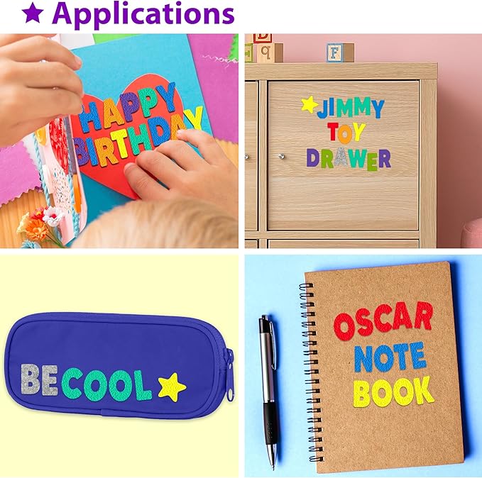 - 🔟 600+ assorted felt stickers 🔟 : Over 600 assorted felt self adhesive stickers are included, with wide variety of colors and shapes. Alphabets, numbers and other fun patterns and shapes.