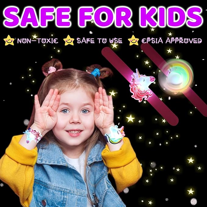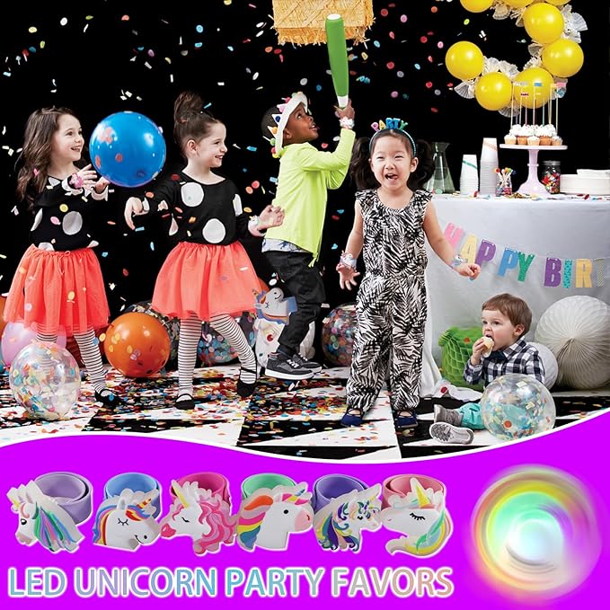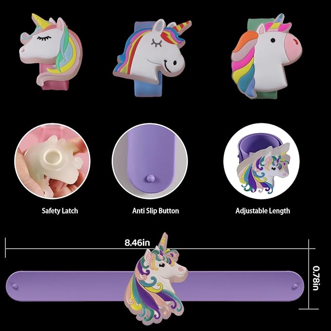 - Different from other slap bracelets for kids, our unicorn slap bracelets are made of light-up accessories and can also rotate 360 °. It's unicorn birthday decoration.