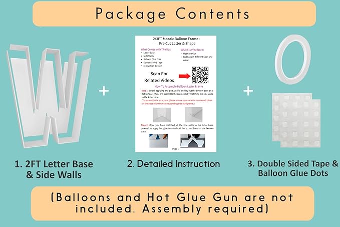 - FAST and EASY ASSEMBLY - Decorate your party like an event balloon artist! Our 2ft mosaic balloon frame letters are pre-cut to the perfect measurements, saving you the hassle of printing, measuring, and cutting templates yourself!
