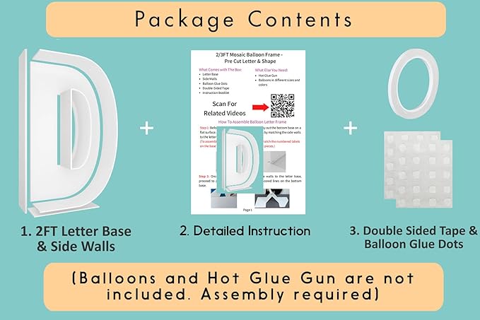 - FAST and EASY ASSEMBLY - Decorate your party like an event balloon artist! Our 2ft mosaic balloon frame letters are pre-cut to the perfect measurements, saving you the hassle of printing, measuring, and cutting templates yourself!
