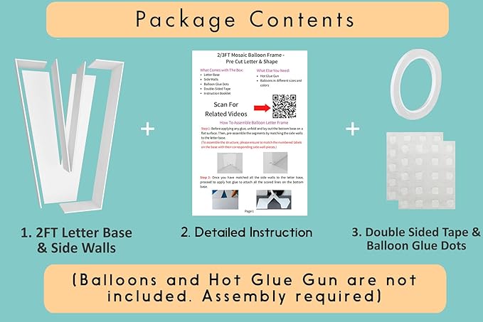 - FAST and EASY ASSEMBLY - Decorate your party like an event balloon artist! Our 2ft mosaic balloon frame letters are pre-cut to the perfect measurements, saving you the hassle of printing, measuring, and cutting templates yourself!