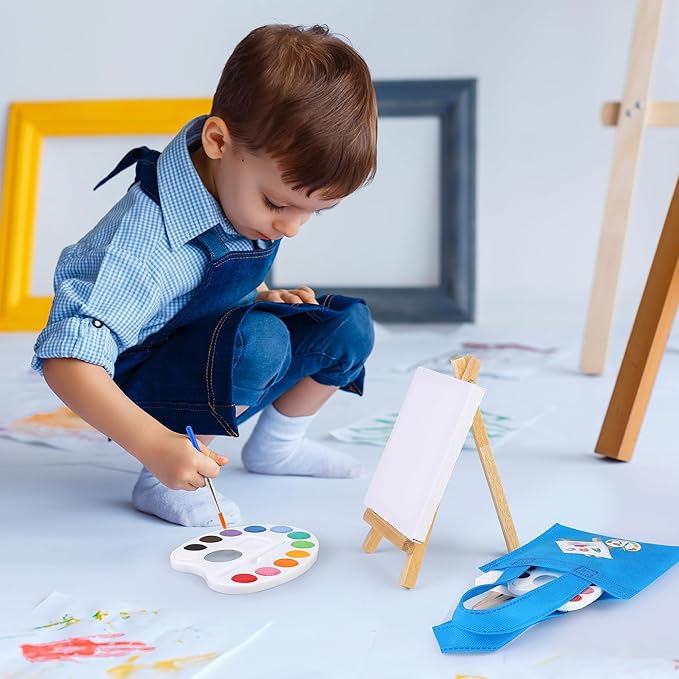 • Package includes: you will receive 12 pieces of watercolor paint, 12 pieces of mini wooden painting canvas easels, 12 pieces of painting aprons, and 12 pieces of canvas tote bags, 48 pieces in total; the sufficient quantity can meet your painting and learning needs, making it an excellent gift for students