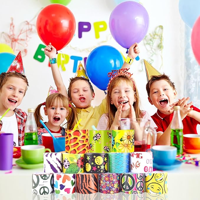 - ๐ญใ๐๐ซ๐๐๐ญ ๐๐จ๐ซ ๐๐๐ซ๐ญ๐ข๐๐ฌ ๐๐ง๐ ๐๐ฅ๐๐ฒ๐๐๐ญ๐๐ฌใWhether it's a birthday party or a playdate with friends, these slap bracelets make for an exciting and entertaining activity. Kids can trade and share their favorite designs, creating lasting memories and fostering friendship.