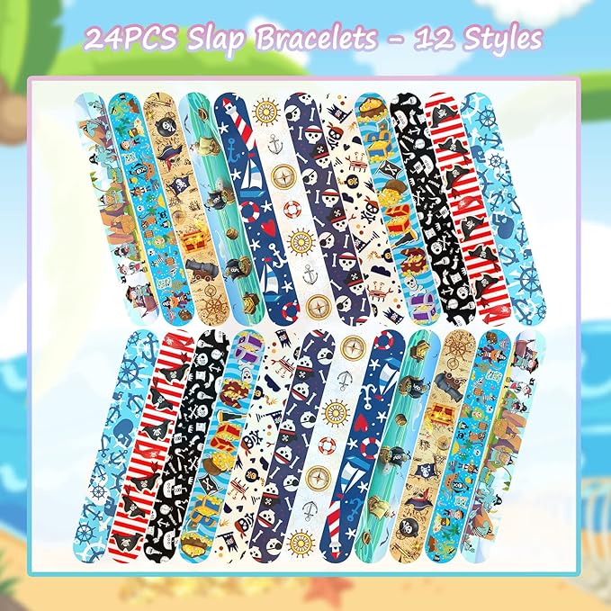 Viicoor 24 PCS Slap Bracelets Pirates Snap Bracelet Wrisrtband for Party Favors Basket Bag Filler School Prizes Birthday Exchanging Gifts Goodies Gadget Bulk (14-Pirates-24PCS)