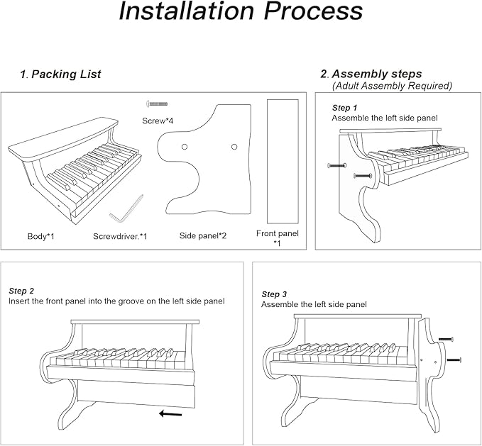 • High Standard:The piano keyboard has been certified by TUV and meets the standard of ASTM F963. All materials are non-toxic and odorless, allowing children to use them with peace of mind. Natural walnut color appearance, like a piece of art. (Adult assembly required.)