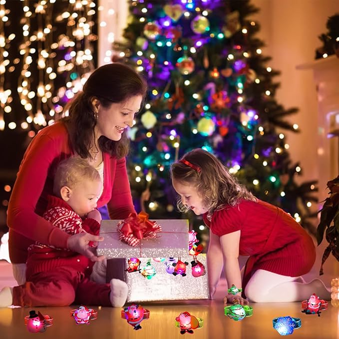 - 🎁Glow in the Dark Toys- Cute Christmas themed patterns designed for any age kids, include All kinds of Santa Claus, snowman, Christmas tree and so on. Great for Christmas party favors.