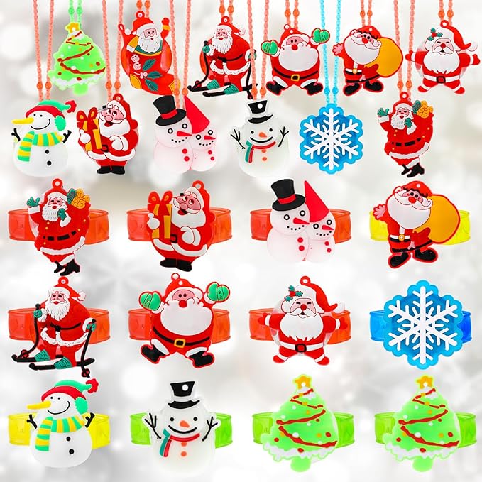 DIYASY Light Up Christmas Necklace Bulk, 24 Pcs Party Favor LED Bracelet for Kids Adults Glow in the Dark Flashing Toys Christmas Stocking Stuffers Ornaments Decorations