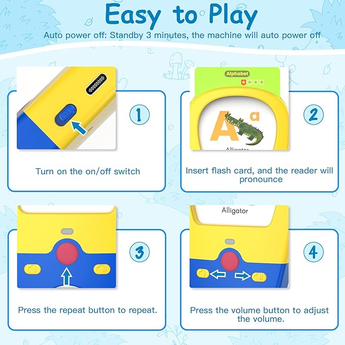 - 【Easy to use】This talking machine is suitable for toddler to use, with simple operation. Just insert the card into the card reader slot to play the content on the card. Press the red button in the middle to repeat, and you can adjust the volume as needed. It is portable and convenient to carry wherever you go.