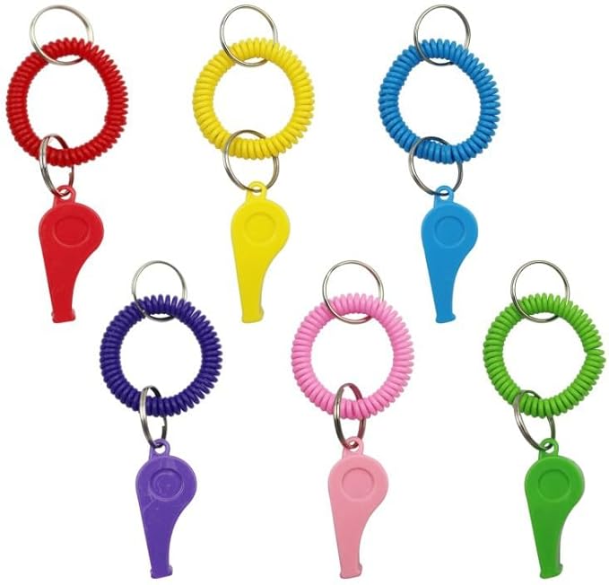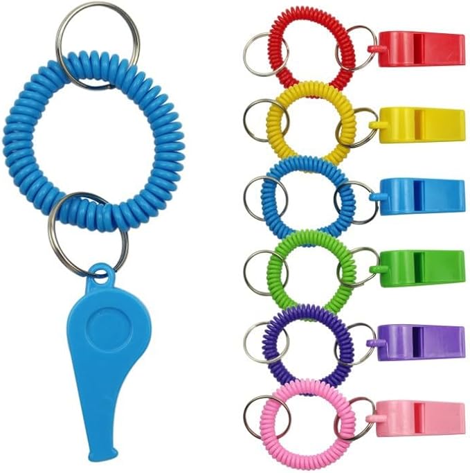 Whistle Bracelets with Keychain, Set of 24, Plastic Whistle Bracelets, Assorted Colors, for Sports Party Favors, School Sports Supplies, Great Party favor, Goody Bag Fillers