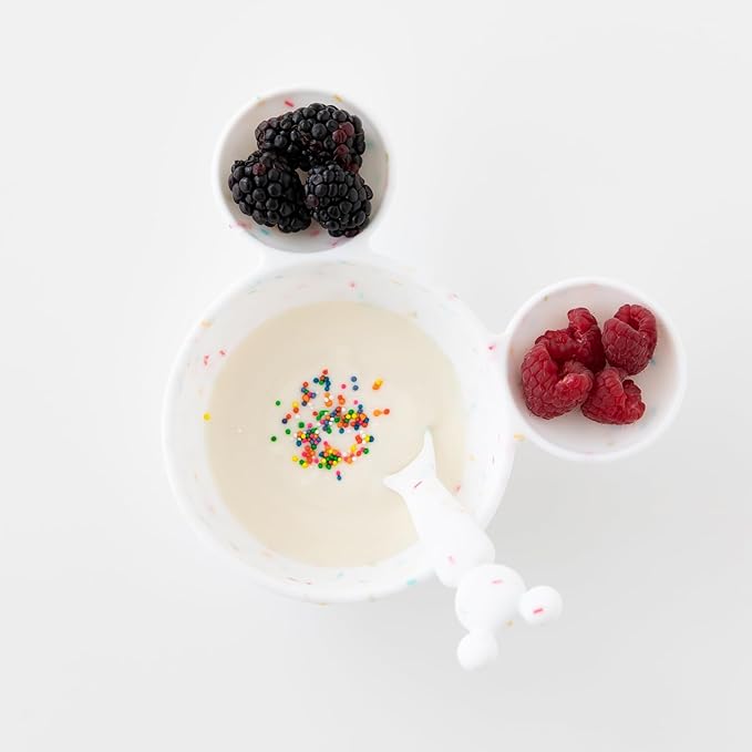 Bumkins Disney Baby Bowl, Silicone Feeding Set with Suction for Baby and Toddler, Includes Spoon, First Feeding Set, Essentials for Baby Led Weaning, Babies Eating 4 Months Up, Mickey Mouse Vanilla