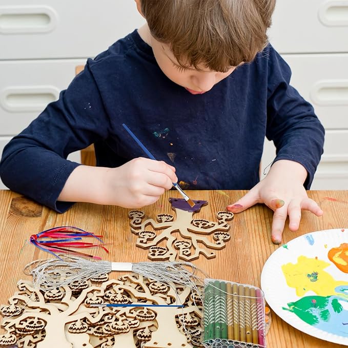 - Inspire Kids Imagination:This Halloween tree wind chime crafts for kid scan stimulate the imagination of children, which can assemble and design a unique wind chime with their own mind.This is a good opportunity to exercise children's eye-hand coordination and bring their initiative into full play.Allow children to have more different experiences about this wooden fall craft kits.