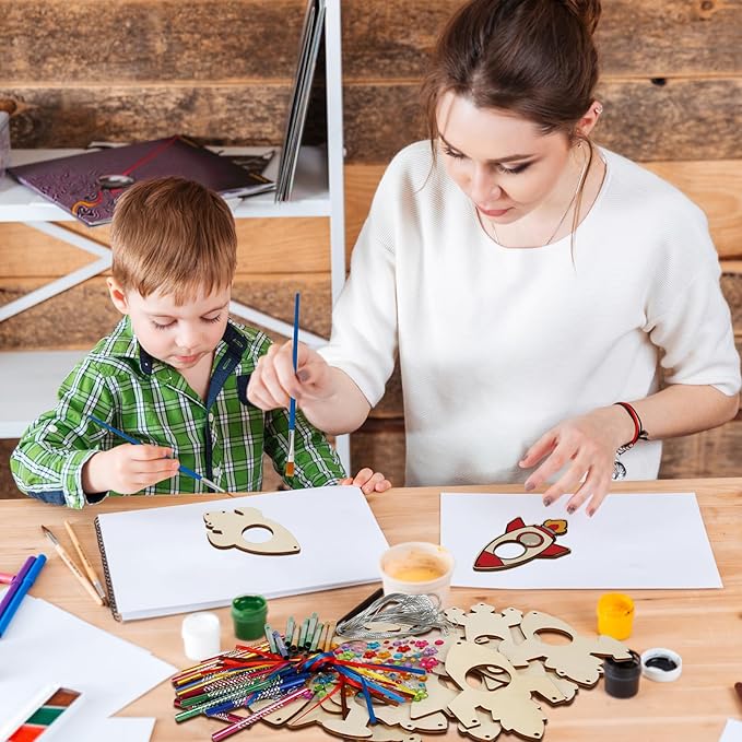 - Inspire Kids Imagination:This rocket wind chime crafts for kid scan stimulate the imagination of children, which can assemble and design a unique wind chime with their own mind.This is a good opportunity to exercise children's eye-hand coordination and bring their initiative into full play.Allow children to have more different experiences about this wooden rocket craft kits.