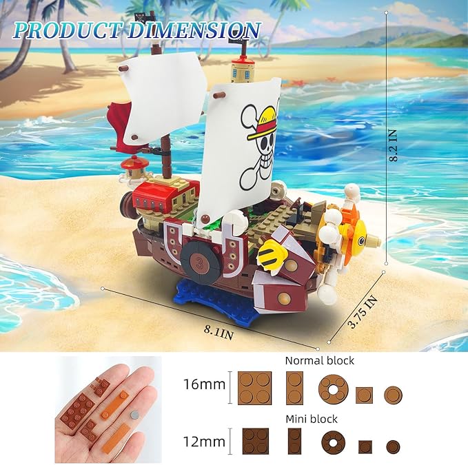 • 【Explore Anime One Piece】Build one piece pirate ship Thousand Sunny building kit set with skull pirate flag, adjustable mast, rotatable rudder, 9 main anime pirate figures and many realistic details. We recreate the ship on the sea scene in the anime of the One Piece.