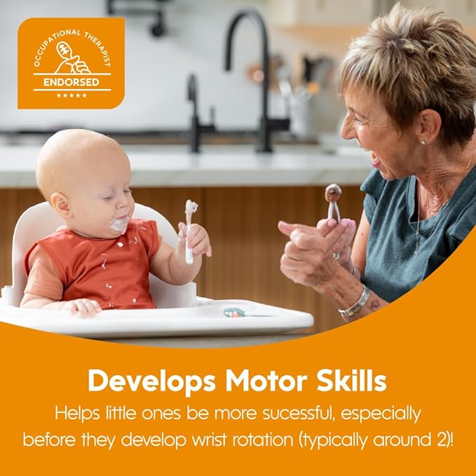 - Baby Utensils for Ages 6 Months to 18 Months: No scooping, no balancing, and best of all: no wrong way to hold it! Thicker, contoured handled baby spoons designed to comfortably and securely fit a child's hand.