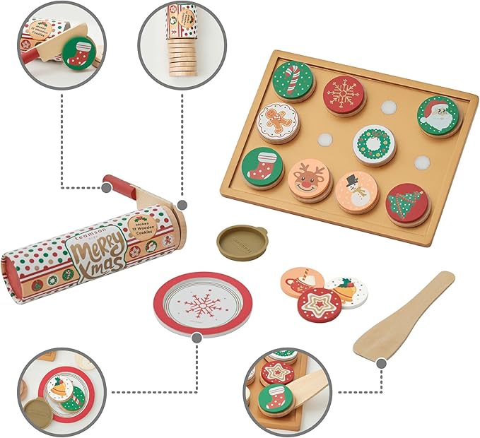 Teamson Kids Cuttable Christmas Cookie Play Wooden Food Set with Sliceable Cookies, Decorations, and Cookie Sheet - for 3 yrs. and up - Multi