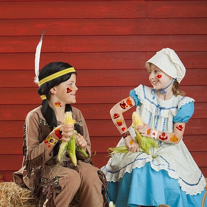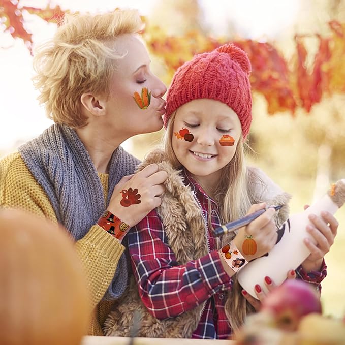 - Thanksgiving Temporary Tattoos - These Thanksgiving tattoos are safe non-toxic material that can be used by children, teens and adults, our tattoo is easy to use and lasts 3-5 days, it is suitable for any part of the body, our waterproof tattoos are perfect for adding fun to the Thanksgiving party.