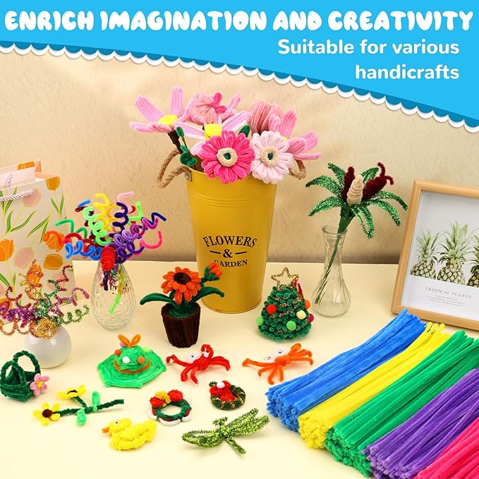 - Perfect Present: Pipe cleaners craft supplies are ideal accessory for craft projects such as making flowers, vegetables, animals, holiday ornaments, etc.Suitable for classroom activities, family activities, craft projects, Christmas parties.