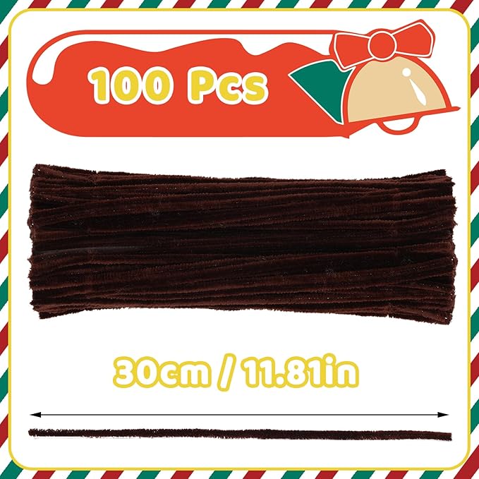 Pipe Cleaners, 100PCS Christmas Pipe Cleaners Craft Supplies, Dark Brown Pipe Cleaners Bulk Fuzzy Sticks for DIY Art and Craft Projects Home Decoration