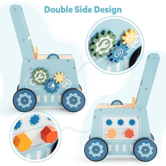 Beright Wooden Baby Push Walker, Wooden Baby Walker and Tool Toy for Toddlers, Kids Tool Bench, Baby Activity Center, Toddler Montessori Educational Toys, Blue
