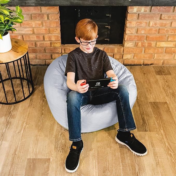 - COMFORT MEETS STYLE: Big kids and little ones alike can enjoy a comfy spot to sit all their own! This bean bag chair is a great fit for a variety of living spaces with the "classic" bean bag shape everyone loves! Designed with a convenient handle makes it easy for little hands to travel to their next adventure.