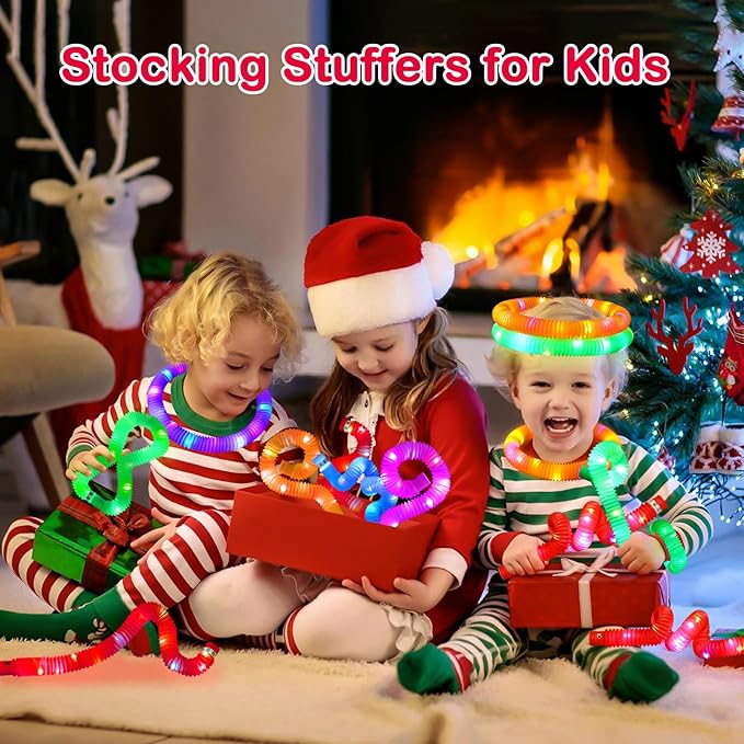 - High Quality Light Up Kids Toys - Made of high-quality materials, thick, soft, no sharp corners on the edges, no need to worry about children being hurt during play. The battery is sealed inside and POP tube can withstand multiple stretches, more durable.
