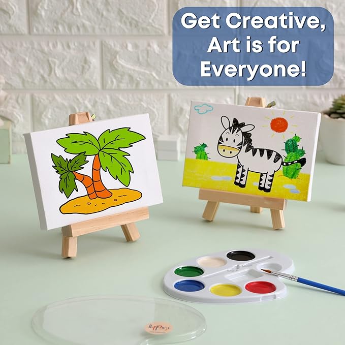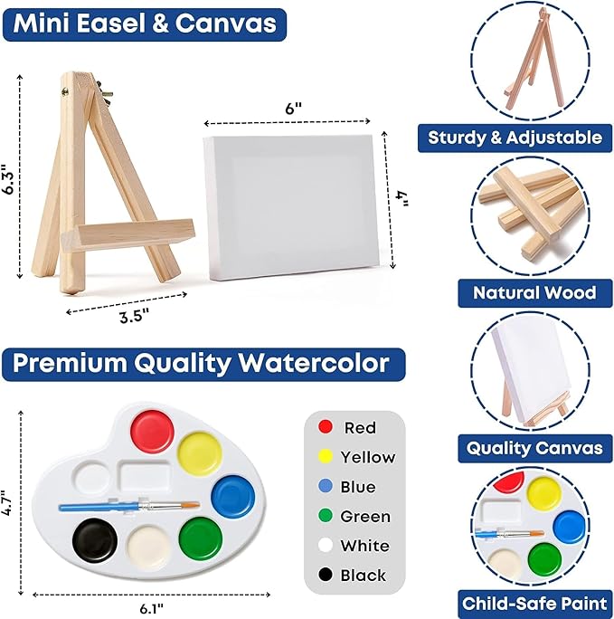- Top Quality, Non-Toxic & Safe - Our canvases, easels and paint sets are high-quality and non-toxic paint for toddlers and kids. These mini paint sets are also washable and mess-free. Makes water color painting on canvas for kids fun