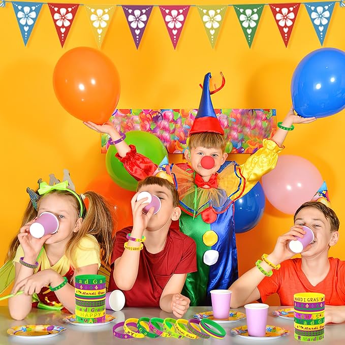- Reliable Material: Our Mardi Gras party favors are made of good quality silicone, soft and durable, strong support, not easy to deform. Mardi Gras rubber wristbands are flexible and can be stretched to fit different wrist sizes, making the Mardi Gras bracelets ideal for adults and children. The Mardi Gras party favors are design for Mardi Gras and will withstand the test of time, ensuring you shine through the festivities
