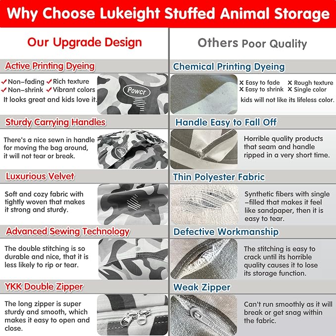 - Luxury and soft velvet fabric with double stitching that the tightly woven structure of it provides excellent resistance to wear and tear. It has more structure than a regular flimsy bean bag. So this stuffed animal storage bean bag chair cover will hold up great with your kids, withstand them playing with it