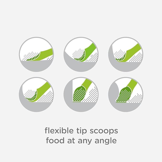 - INNOVATIVE DESIGN: Inspired by natural plant elements, the leafy flexible silicone tip enables scooping food at any angle. Spoon base allows for hygienic, upright placement on any surface, keeping the spoon clean.