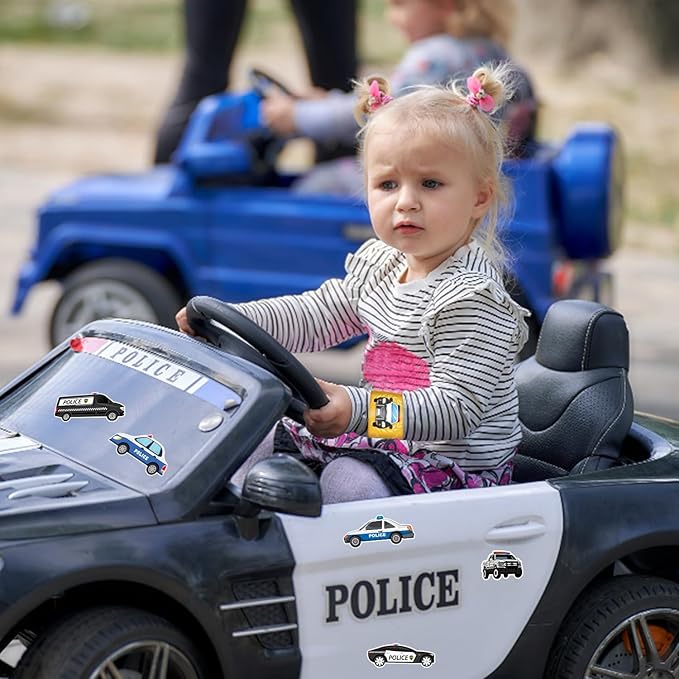- Police Party Favors: This stretchable slap bracelets adopt vivid police car design, bright in colors and eye catching; When children play the police game, they give each other their favorite patterns and play the role of police or thief; Using cool bright police stickers can be improved kid’s creative abilities, promote creative play and development of fine motor skills of the hand