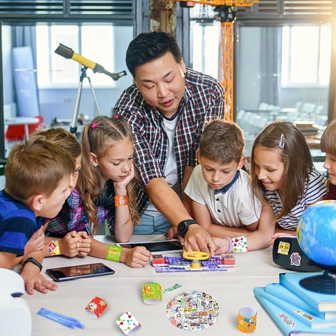 - 【Science Party Favors】:Our science theme package is composed of 36pcs(12 unique styles) science slap bracelets, 3 of each color and style, 50 pcs scientist stickers, science theme stickers, these gifts featuring test tubes, beakers and microscopes, magnets, chemical reactions, caution signs, full of science theme elements.