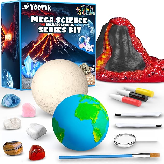 Science Kit, Volcano Kit for Kids Age 5-7 6-8-12 Boys Girls Kids Toys, Crystal Earth Moon Mars Science Kit, Dig Kits & Gemstones, STEM Project Toy for Boys and Girls Perfect Birthday
