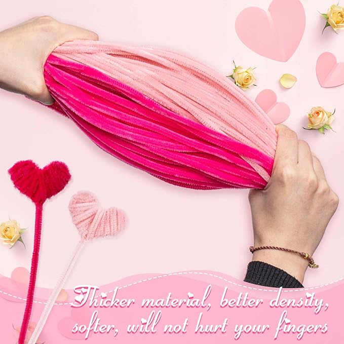 - Operational Across Multiple Platforms: be it projects, DIY crafts, decorative endeavors, or even as nice gifts, these pink pipe cleaners find their purpose in a plethora of applications; Its versatility, coupled with its vibrant colors and durability, makes it a nice tool for your art workshops, home decor crafts, or even as cute embellishments to gifts and presents