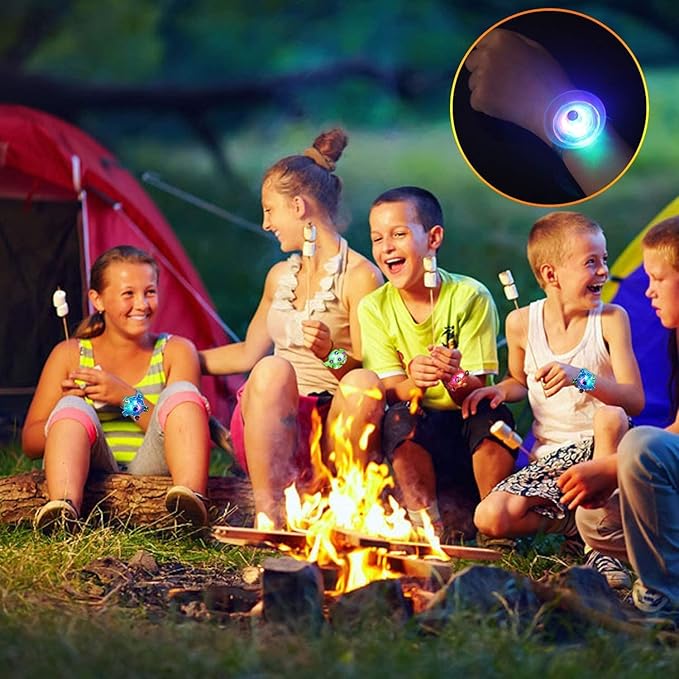 - These party favors for kids goodie bags comes with 48 pack led light up bracelet, all these party favors are multiple random colors and various styles.It is a combination of bracelet,led lights and fidget spinner toy.Sparkling LED can light up the night around you at party.