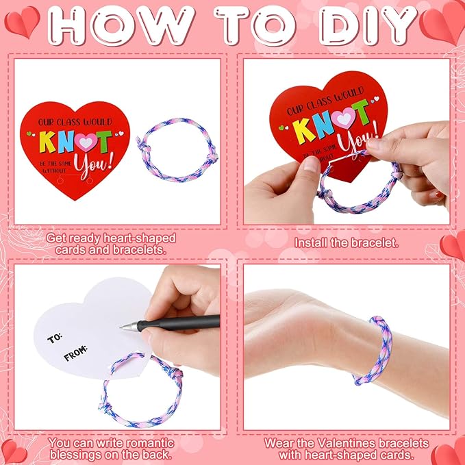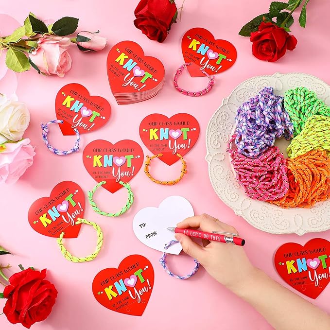 - Express Love Uniquely: this Valentine knot bracelets with card set is unique because it allows people to express their love uniquely; With space for personal inscriptions, and printed words of Our Class Would Knot Be The Same Without You, each card can carry a special, personalized message for the receiver, adding a touch of intimacy to your Valentine's Day celebrations