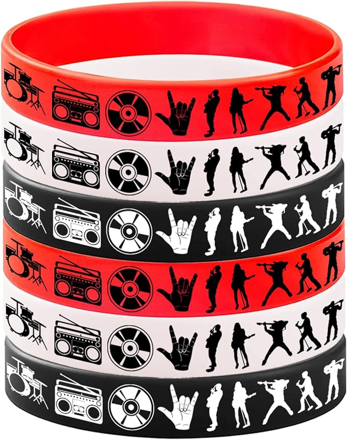CupaPlay 24PCS Rock and Roll Rubber Bracelets -Rock and Roll Theme Party Supplies Decorations 80s 90s Party Music/Musical Birthday Baby Shower Silicone Wristbands Party Favors