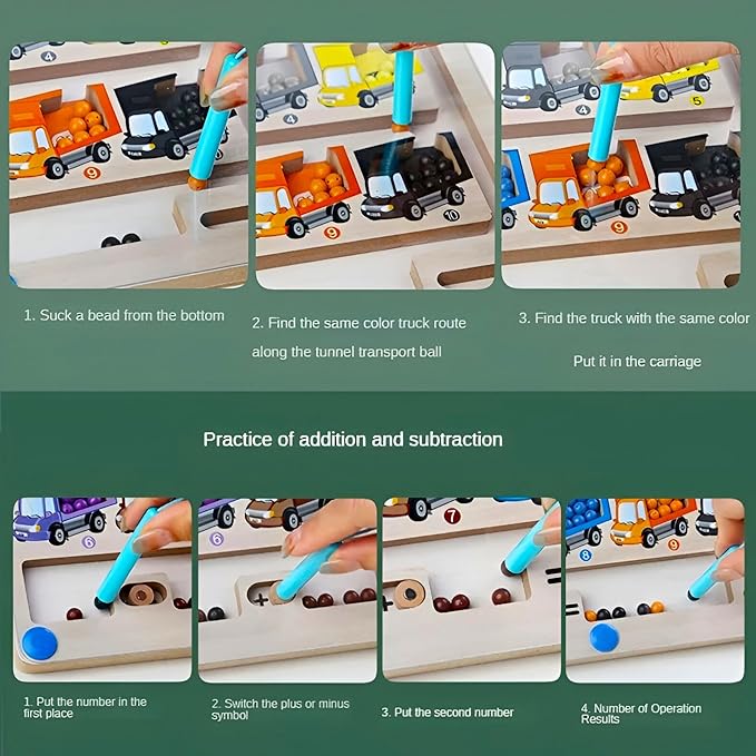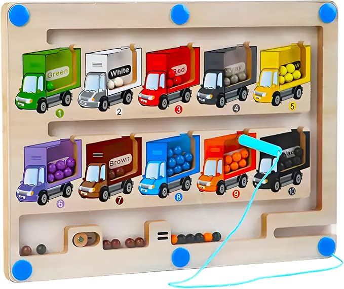 - COUNT AND MATCH WITH THE MAGNETIC BOARD: Your children will practice moving the beads to the trucks plus an added bonus of addition and subtraction. These actions will help them with color matching, counting skills and will be more patient and focused. This educational toy is fun and very engaging for children and they will not be easily bored with it.