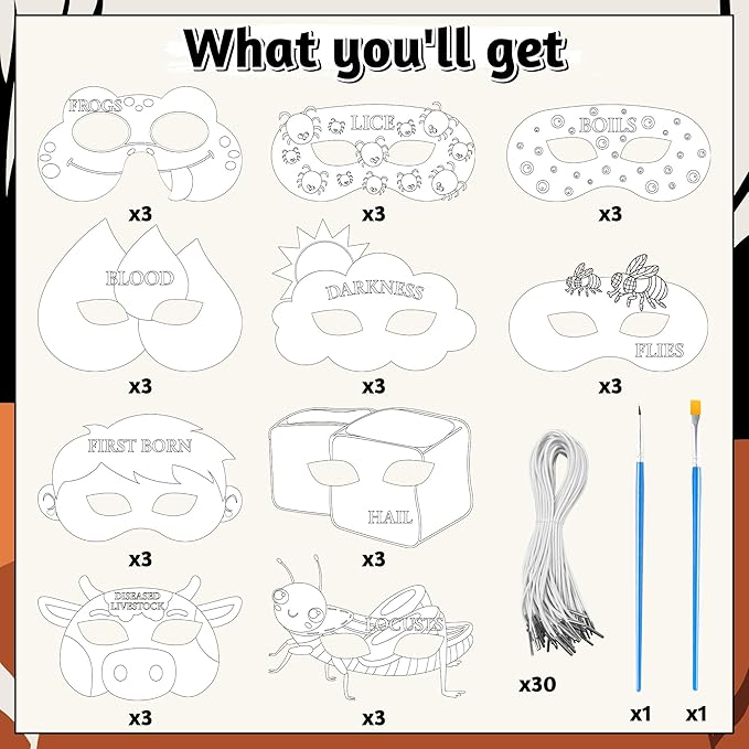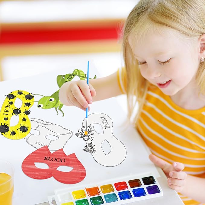 - Engaging Passover Activity: Elevate your Passover celebrations with the Ticiaga 30pcs Passover Unpainted Mask DIY Seder Game Party Masks. These masks provide an interactive and creative way for kids to learn about the 10 Plagues of Egypt through fun and imaginative play.