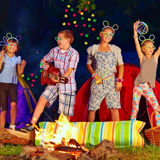 - Easy to Use:Our glowsticks comes with various of modes and connectors, easy to DIY glow stick glasses, glow stick and bracelets, glow headbands, balls, flowers. Just use your imagination to create more glow party decorations and accessories. Leakfree and waterproof glow sticks for kids camping fun,wedding, party prizes etc.