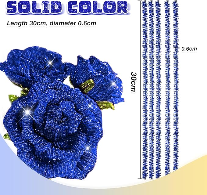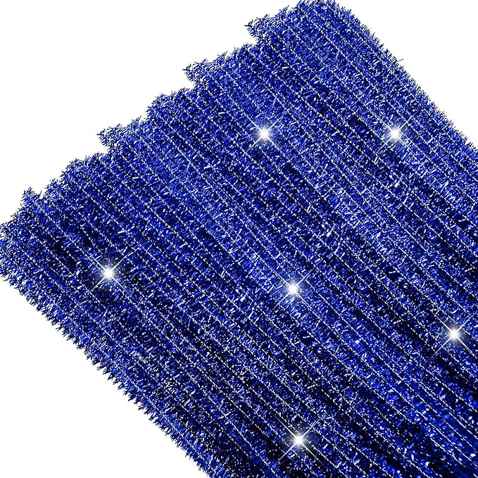 TOAOB 100pcs Christmas Glitter Pipe Cleaners Blue Metallic Pipe Cleaners Craft Supplies 6mm x 12 Inch Chenille Stems Pipe Cleaners for Art DIY Crafts Decorations