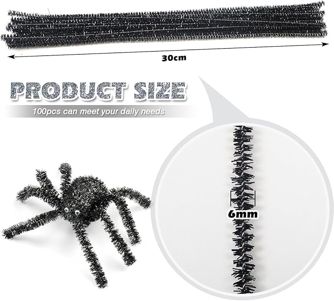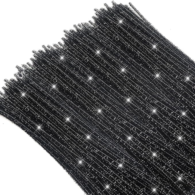 TOAOB 100pcs Christmas Glitter Pipe Cleaners Black Metallic Pipe Cleaners Craft Supplies 6mm x 12 Inch Chenille Stems Pipe Cleaners for Art DIY Crafts Decorations