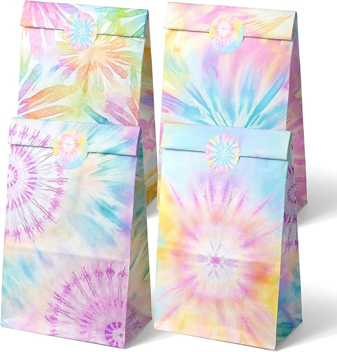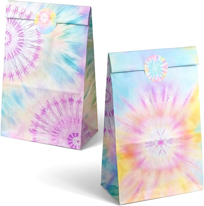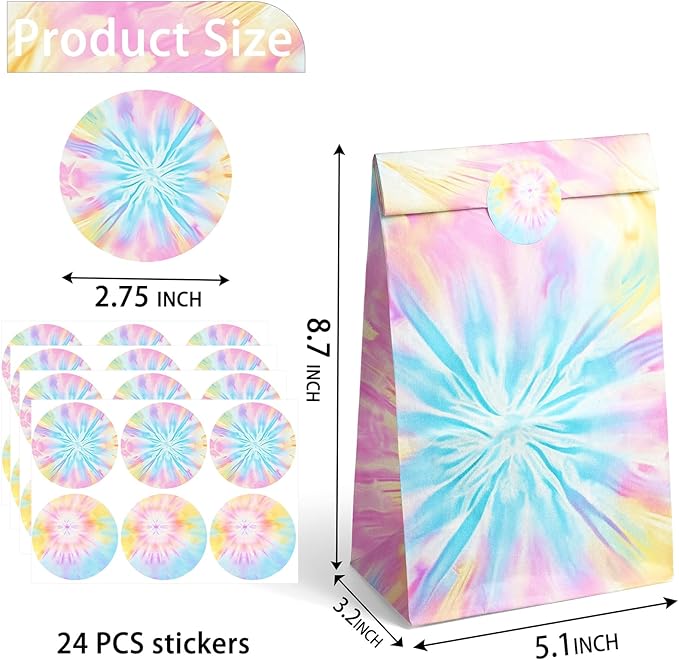 - Complete Package - Each set includes 24 meticulously crafted Tie Dye themed paper bags and 24 vibrant stickers featuring psychedelic tie-dye patterns. Feel free to mix and match stickers and bags to create a custom tie-dye theme that suits your preferences.