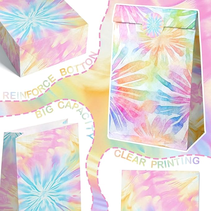 - Premium Materials - Crafted from high-quality eco-friendly Kraft paper, these bags boast durability and the whimsical charm of tie-dye. They are also free from any unwanted odors, with strong adhesive properties. The reinforced bottoms ensure they can withstand the excitement of a Tie Dye themed celebration.