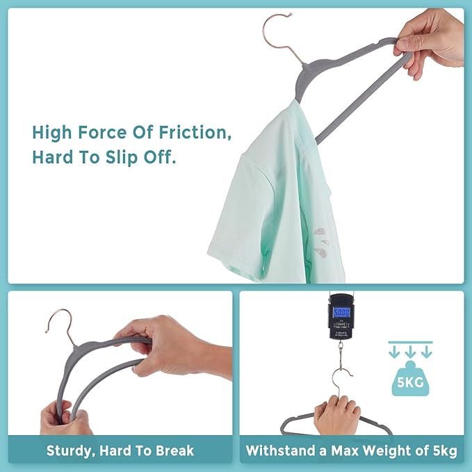 - 【Humanized Design】- Soft velvet flocking provides a non-slip surface that holds fabrics in place, precisely-cut shoulder notches secure strappy tanks and dresses. Shiny chrome hook with 360-degree swivel allows all clothes hung in the same direction for a neat appearance in seconds.