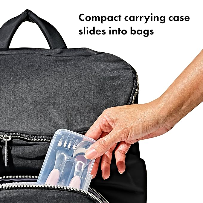 - Compact case fits easily into diaper bags and lunchboxes for on-the-go meals