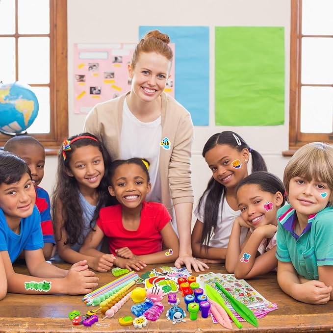 - Easy to Use: Bug Bee Party Goodie Bags Fillers Bulk features cute bugs images that are popular with children, smooth pens,pencils and notebooks, easy to use erasers,pencil sharpeners, and stickers,and children who receive gifts will use this stationery to learn to develop interest